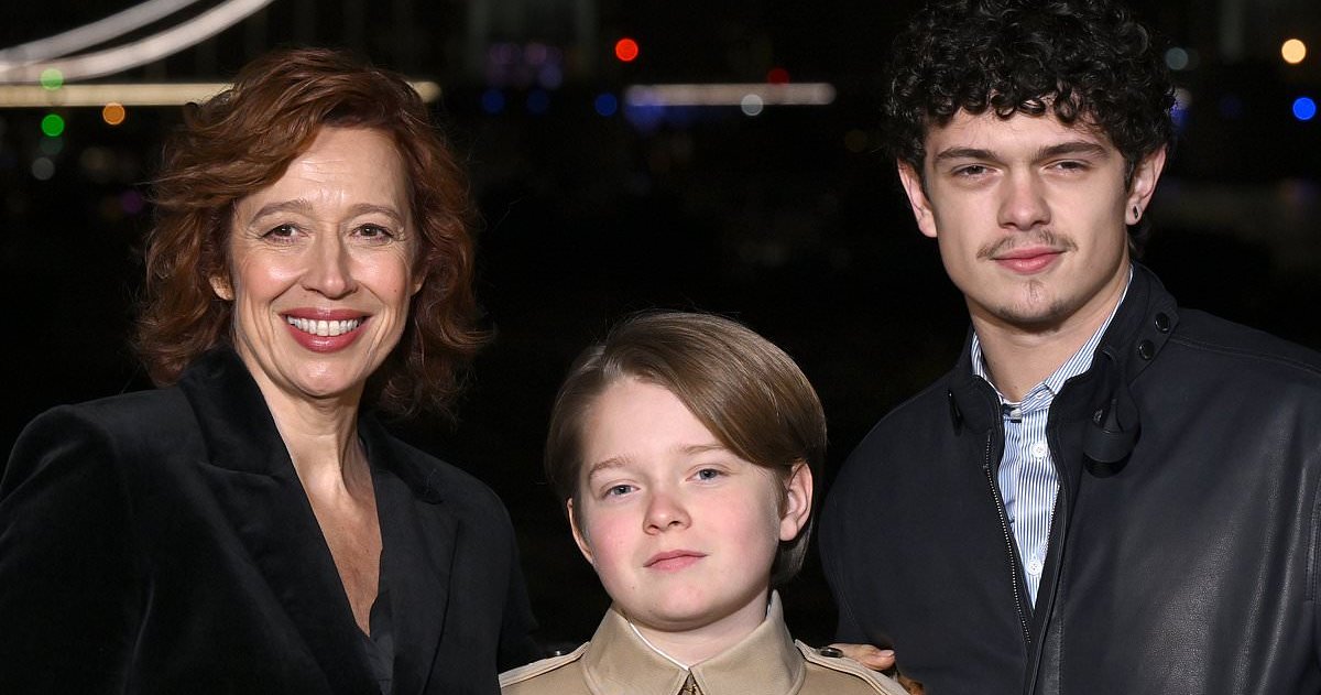 Katy Cavanagh, best known as Coronation Street's bubbly Julie Carp, stepped into the spotlight once again, this time with her two sons, Noah and Jacobi Jupe, at the Burberry show during London Fashion Week. Held at the iconic Old Billingsgate, the event was the perfect setting for the actress-turned-momager and her Hollywood-bound sons to shine together. The 52-year-old actress looked effortlessly elegant in a sleek black suit, perfectly accessorized with a chic green khaki shoulder bag. Her pride was undeniable as she beamed from ear to ear, posing with her sons at the star-studded event. Noah, 20, who recently made waves with his role in the BAFTA-winning film 'Hamnet', showed off his style in smart trousers and a leather bomber jacket. Meanwhile, 12-year-old Jacobi, who plays the titular role in 'Hamnet', gave his mom and brother a warm embrace for the cameras.