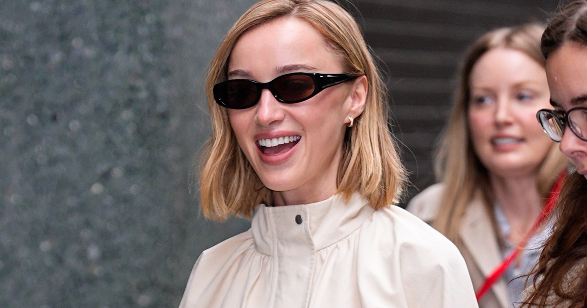 Phoebe Dynevor is turning heads, and not just because of her thrilling new movie, "Thrash." The "Bridgerton" star was spotted in New York City on April 13, promoting her shark-attack thriller with an outfit that screams effortless chic. Styled by Emma Jade Morrison, Dynevor opted for a beige bomber jacket with a funnel-neck collar, a matching midi skirt, and luxe accessories that made her look pop. The centerpiece? A teeny-tiny Louis Vuitton Pochette Tirett bag, paired seamlessly with classic black suede ballet flats.