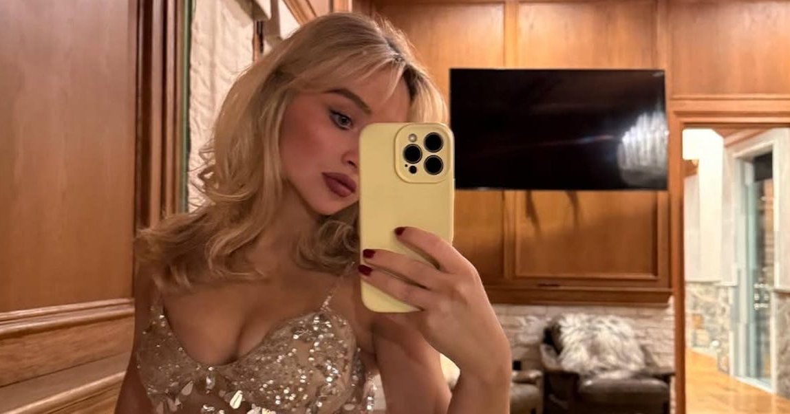 In one standout photo, Carpenter wore a mesmerizing sleeveless dress with a knee-length skirt, adorned with strategically placed silver appliqué over completely sheer fabric. The bold ensemble, which paired perfectly with her matching white bra and panty set, was flaunted in a mirror selfie taken in a cozy, wood-lined room.