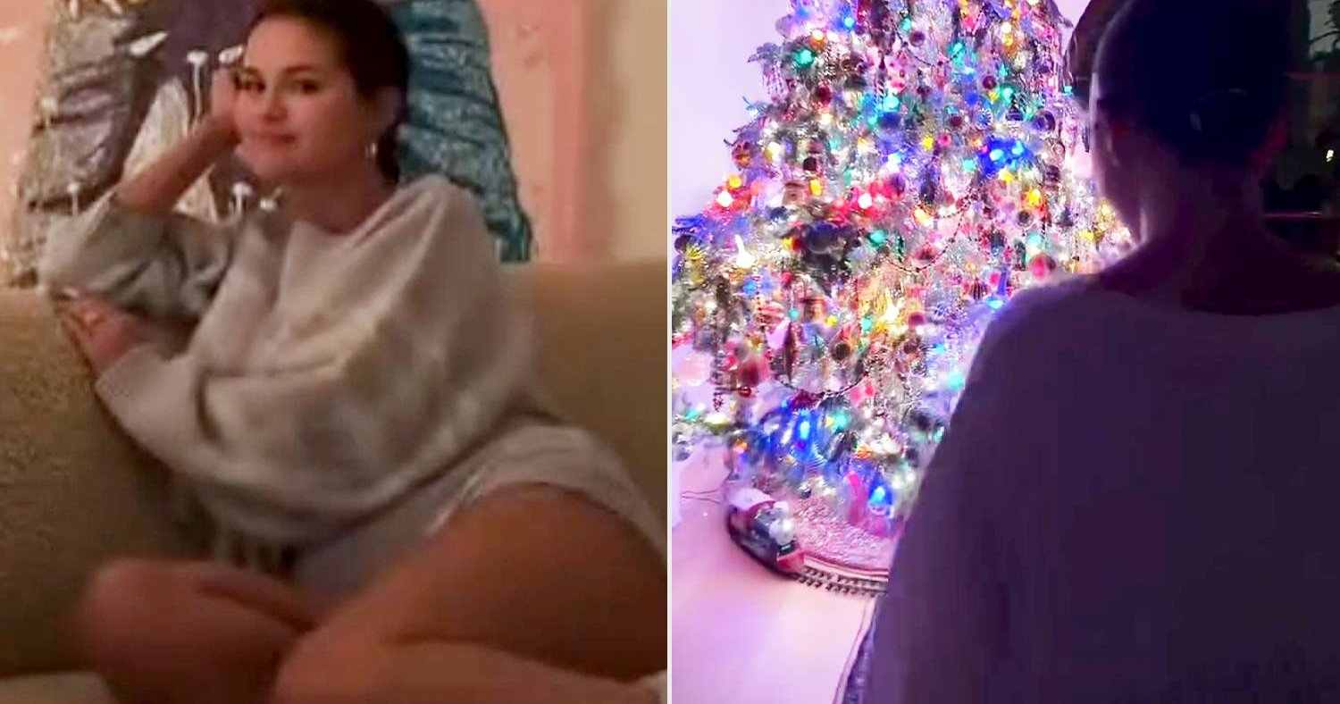 First up is the vintage-inspired Christmas tree that steals the spotlight in one of their living spaces, packed with silver tinsel and an old-school train set circling the base. Gomez, clearly thrilled, points out how the bedazzled tree skirt matches her nails, giving a quick flash of her engagement ring for good measure.